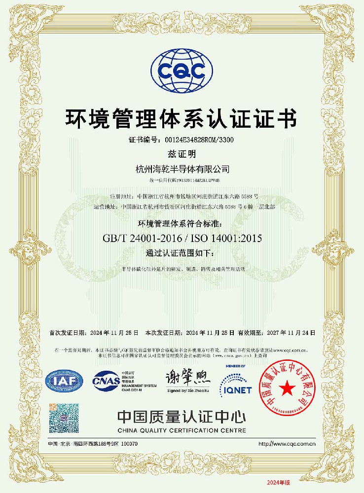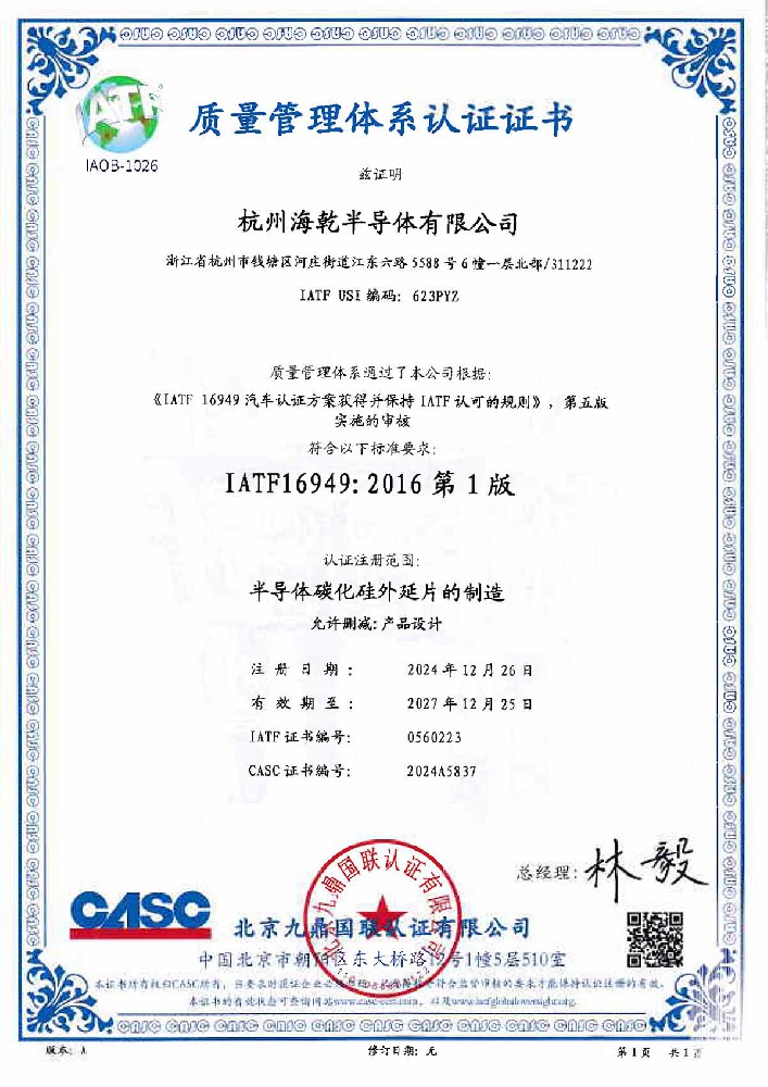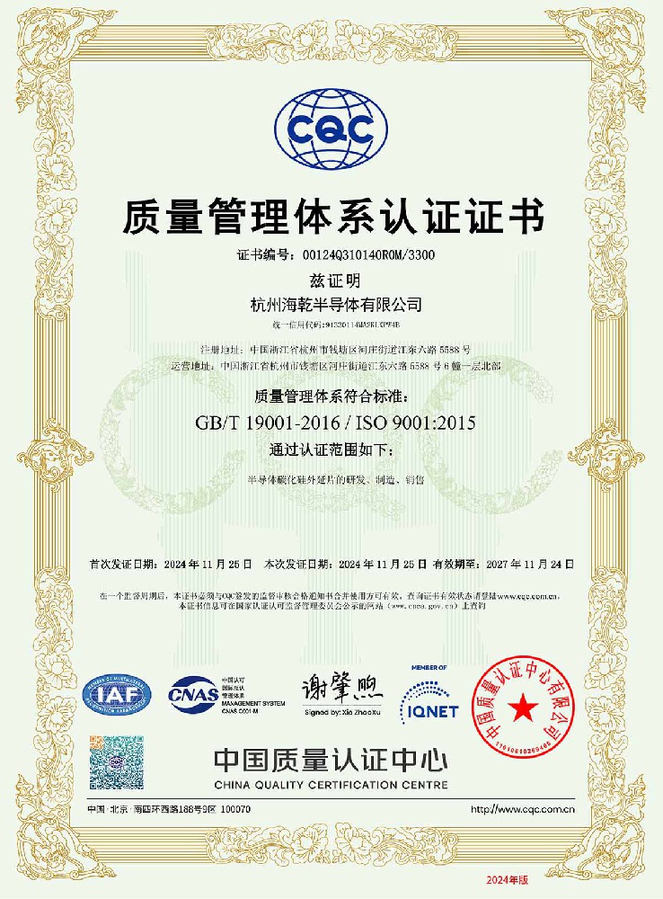 杭州海乾半导体有限公司是一家专注于第三代半导体碳化硅外延片的研发、生产及销售的高科技企业。